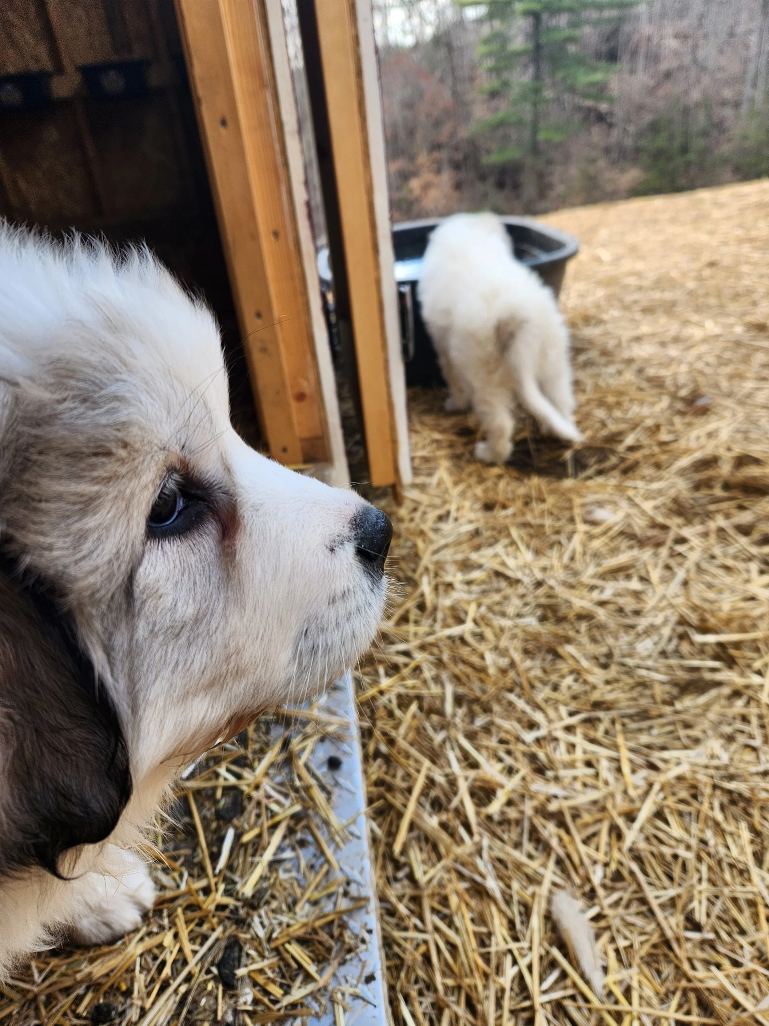 Pete, with his gentle yet watchful nature, and Pearl, with her nurturing spirit, make the perfect pair. Together, they’ve passed on their remarkable traits to their puppies, ensuring that each new generation carries the same commitment to protecting and caring for the farm. Their puppies are raised with love and care, learning the ropes of farm life from their devoted parents.